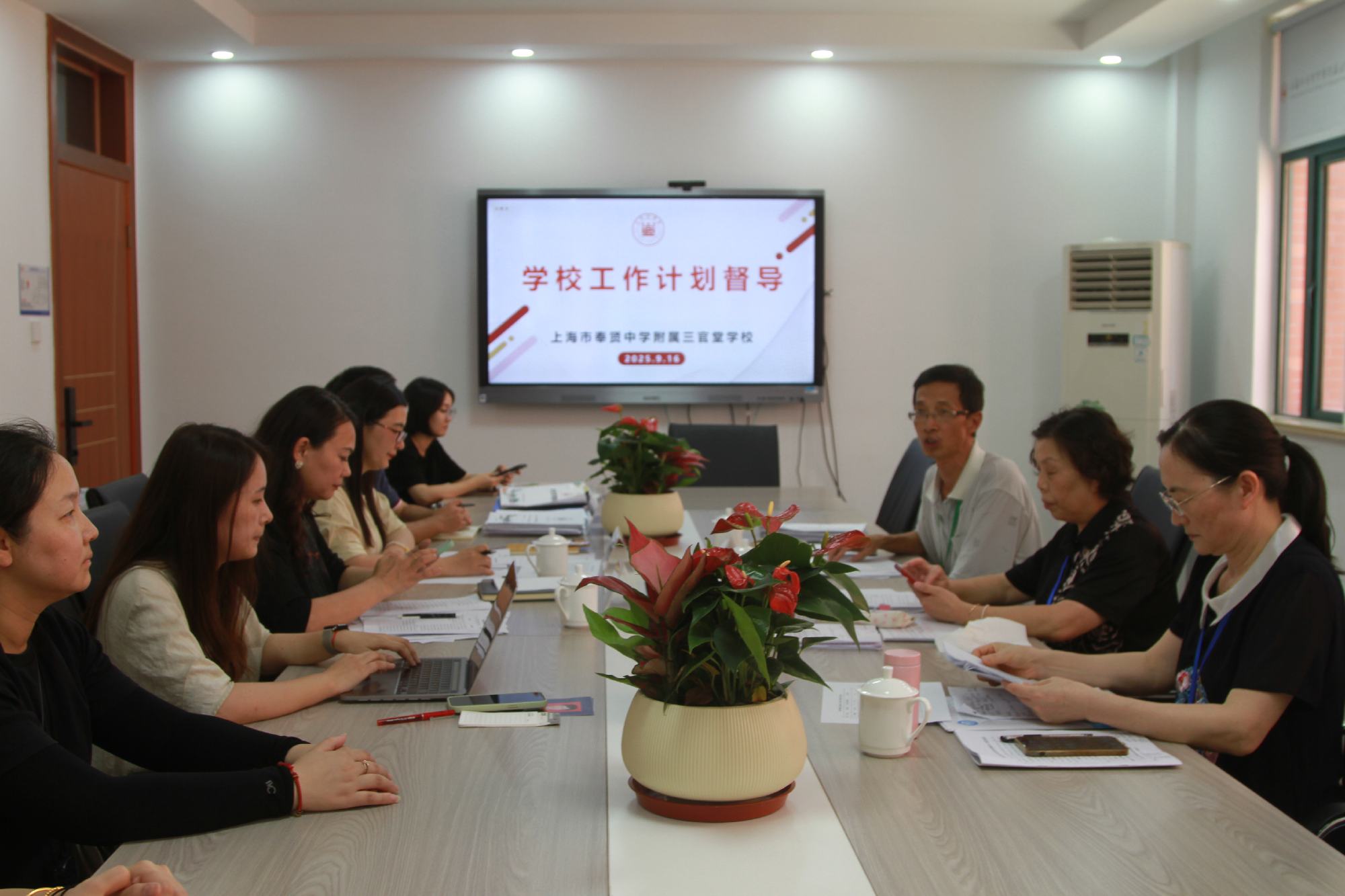 为进一步贯彻《教育强国建设规划纲要(2024-2035)》,落实《新成长教育行动纲要·奉贤区教育事业发展“十四五”规划》和《2025年奉贤教育工作要点》要求,推进各学校立足奉贤发展新定位和区域教育现代化发展总体目标,聚焦“四化一高”新定位,不断提升学校办学水平,9月16日下午,区教育督导室第二责任区督导管理员王坚峰,责任督学朱权华、富秀华来到三官堂学校开展9月“2025学年第一学期学校工作计划”挂牌督导。