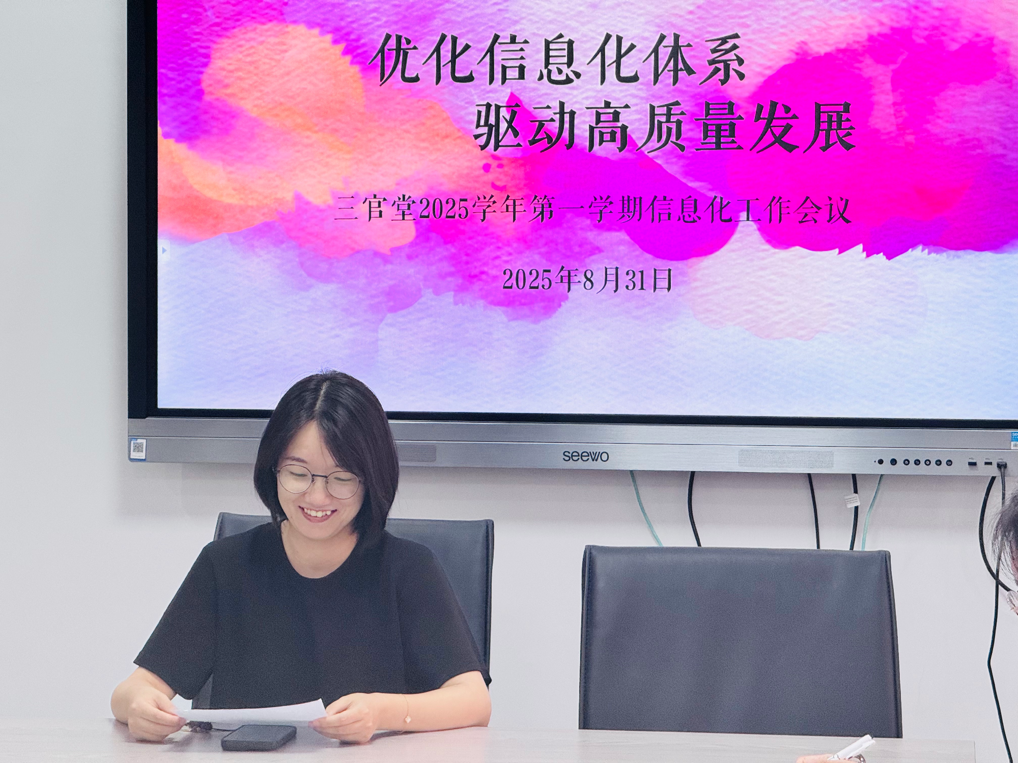 为使新学期信息化工作内容更清晰、各岗位职责更明确,扎实推进本学期信息化工作,8 月 31 日中午,我校召开了以 “优化信息化体系,驱动高质量发展” 为主题的信息化工作会议。会议由课程发展部主任翁岚佳主持,翁主任与信息化工作小组全体成员共同参会。