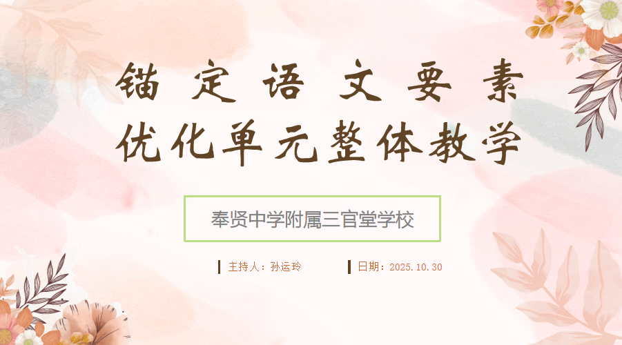 时光清浅,研途生香。为进一步推进课堂教学改革,探索高效课堂教学模式,助力教师精准锚定语文要素,优化单元整体教学策略,10月30日我校小学语文教研组在录播室开展了以“锚定语文要素 优化单元整体教学”为主题的教研活动。闵行区小学语文特级教师崔英杰莅临指导,学校全体语文教师齐聚一堂,共同探索单元整体教学新思路,为教学赋能。