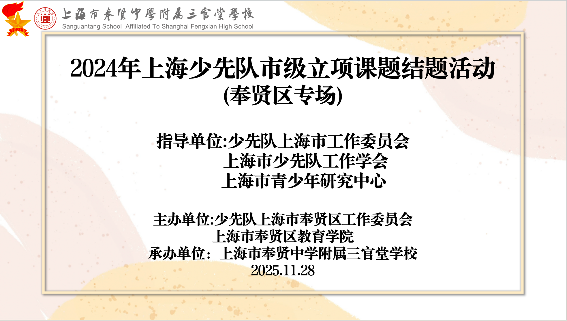 此次结题不仅标志着课题研究取得阶段性成果,更开启了少先队“以活动育心”的新探索。相信在专家引领下,奉贤中学附属小学·三官堂联合学校(三官堂校区)将持续深耕,为培养阳光健康的新时代少年贡献教育力量!