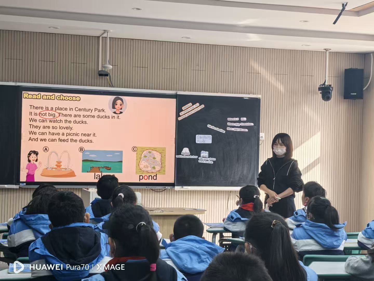 活动伊始,徐青老师展示了4AM4U2Knowing about Century Park,徐老师分享了以“制作世纪公园游玩博客”为驱动性问题的课程设计思路。该设计遵循项目式学习理念,构建了“认知公园—准备出行—实地游玩—分享照片—制作博客”的完整逻辑链,并结合百度、小红书、豆包等工具为学生提供问题解决路径,充分体现了学科与生活、技术的深度融合。